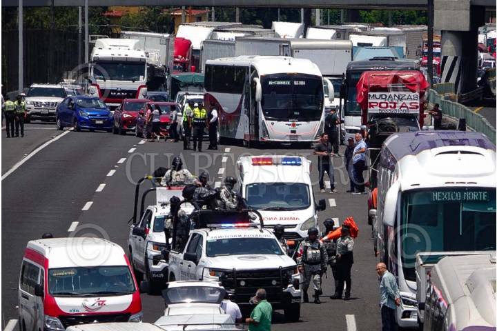 Choferes de la ruta Tizayuca bloquearon desde las 5 de la mañana de este viernes la carretera México-Pachuca en ambas direcciones, los inconformes exigen a las autoridades mayor seguridad en las rutas, así como reforzamiento vigilancia por parte de la Guardia Nacional.
