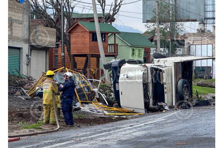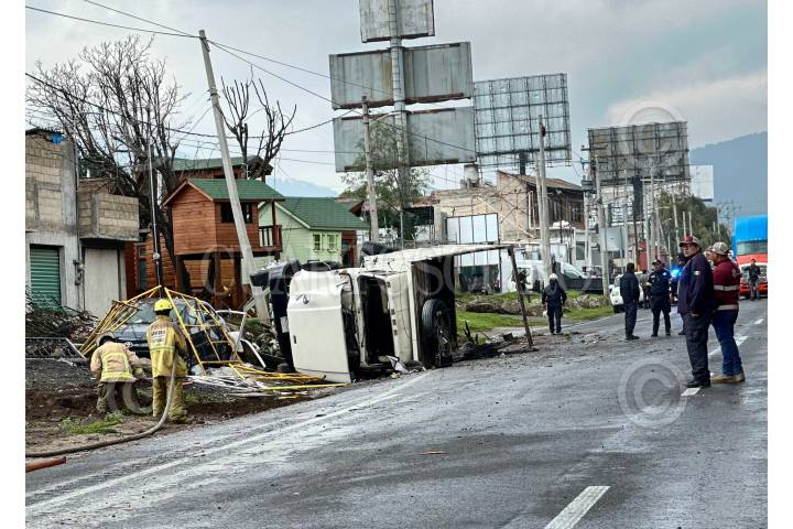 LERMA, ESTADO DE MÉXICO, 11FEBRERO2025.- Un tráiler volcó en la carretera México-Toluca a la altura de la comunidad de Amomolulco en Lerma, se registraron dos lesionados y diversos daños materiales, los cuerpos de emergencia resguardaron la zona para evitar otro accidente. FOTO: CRISANTA ESPINOSA AGUILAR /CUARTOSCURO.COM