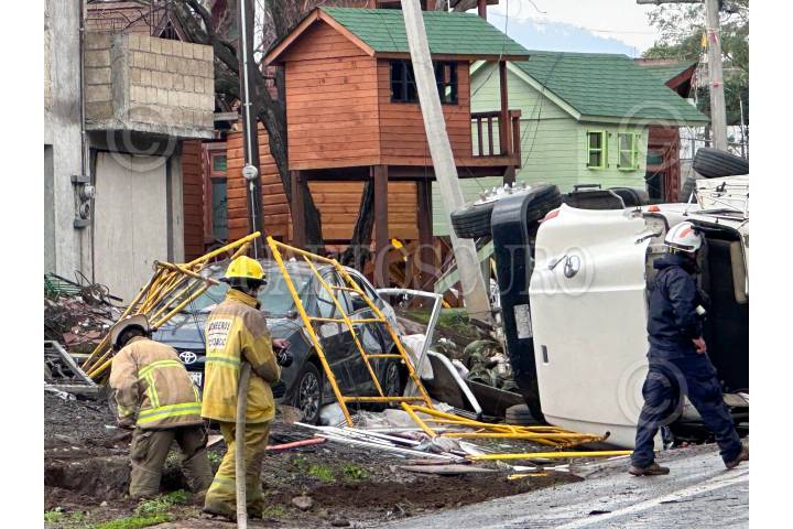 OCOYOACAC, ESTADO DE MÉXICO, 20JULIO2024.- Tres personas murieron al registrarse un accidente en la carretera México-Toluca en dirección a la capital mexiquense, en la zona conocida como Los Chirinos, un tráiler se quedó sin frenos y en su paso golpeó a varios vehículos, el camión de carga terminó impactándose en un restaurante. FOTO: CRISANTA ESPINOSA AGUILAR /CUARTOSCURO.COM