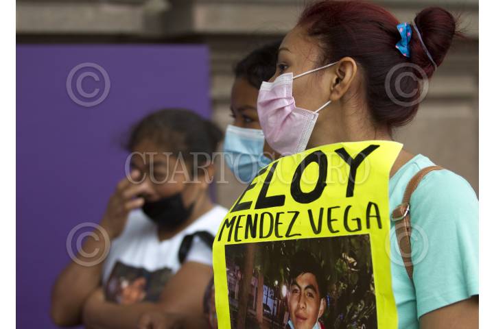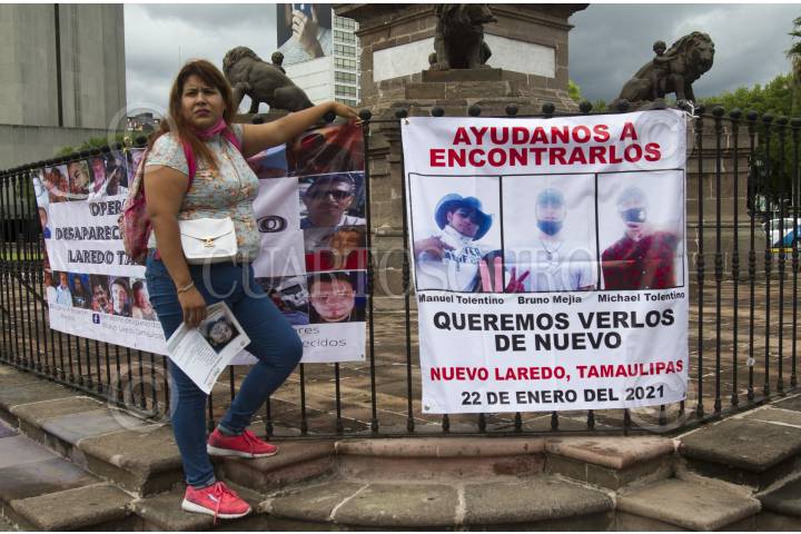 Familiares de desaparecidos en la carretera Monterrey-Nuevo Laredo protestan en la Explanada de los Héroes.