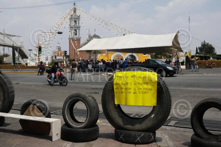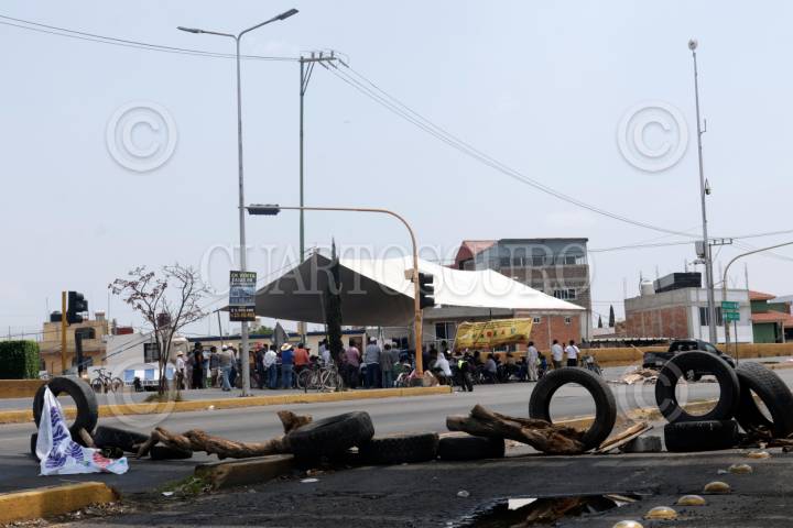 PUEBLA, PUEBLA, 23MAYO2025.- Integrantes de los Pueblos Originarios mantienen plantón en la carretera Federal a Atlixco. La protesta, que suma más de 24 horas, es en rechazo al presunto despojo de tierras atribuidas al grupo Proyecta y otras inmobiliarias, a quienes acusan de violar sus derechos territoriales sin consulta ni consentimiento previo. FOTO: MIREYA NOVO/ CUARTOSCURO.