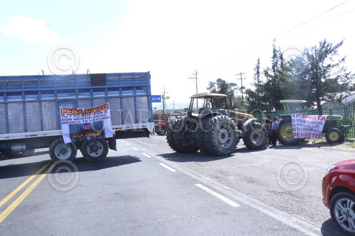 CALPULALPAN, TLAXCALA, .- Integrantes de la Otra Revolución de Transportistas y Campesinos de Tlaxcala, bloquearon con tractores y llantas la Autopista Arco Norte a la altura del municipio de Calpulalpan, por la alza de la gasolina. FOTO: JORGE LEZAMA /CUARTOSCURO.COM