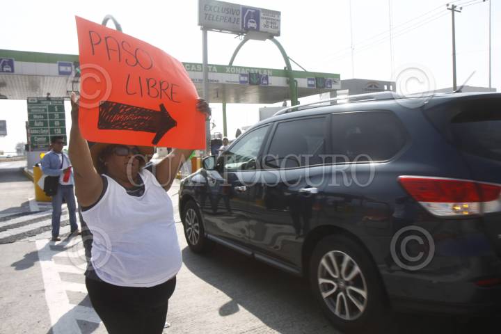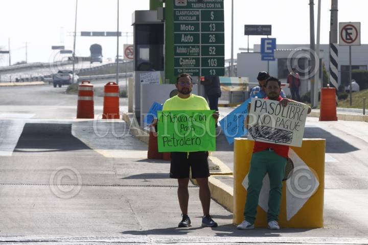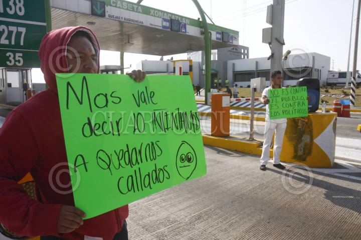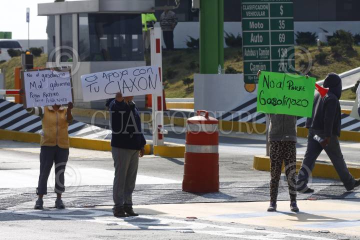 XONACATLÁN, ESTADO DE MÉXICO, 07ENERO2017.- Habitantes del Xonacatlán se instalaron en la caseta Xonacatlán, del Libramiento Ruta de la Independencia, dando el paso libre a los automovilistas como muestra del descontento por el aumento a la gasolina. FOTO: PILAR AGUILAR /CUARTOSCURO.COM