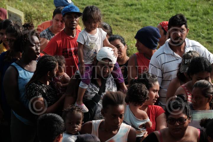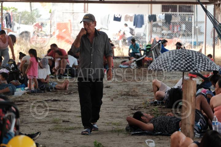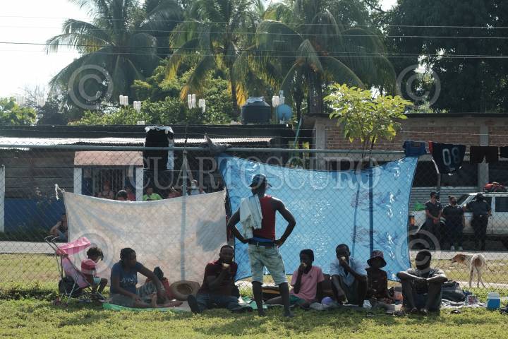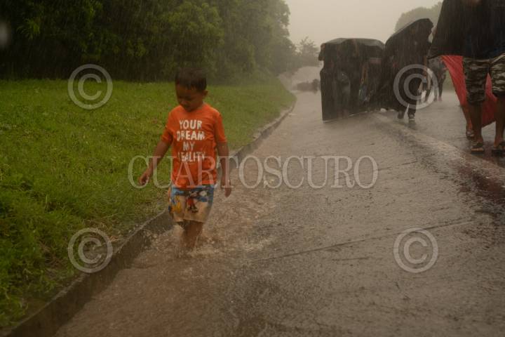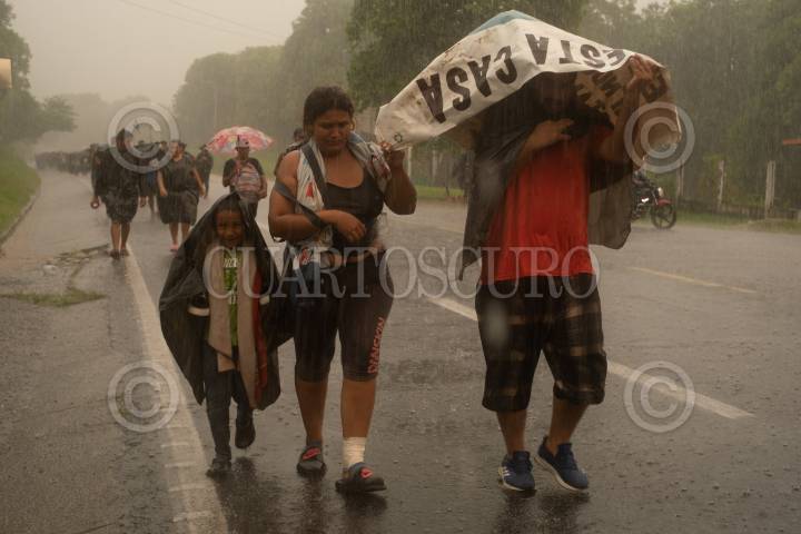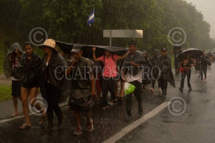 La caravana migrante continúo su andar tras no llegar a un acuerdo con el INM. Una vez que empezó la lluvia, los migrantes decidieron descansar en la localidad de Uluapan.