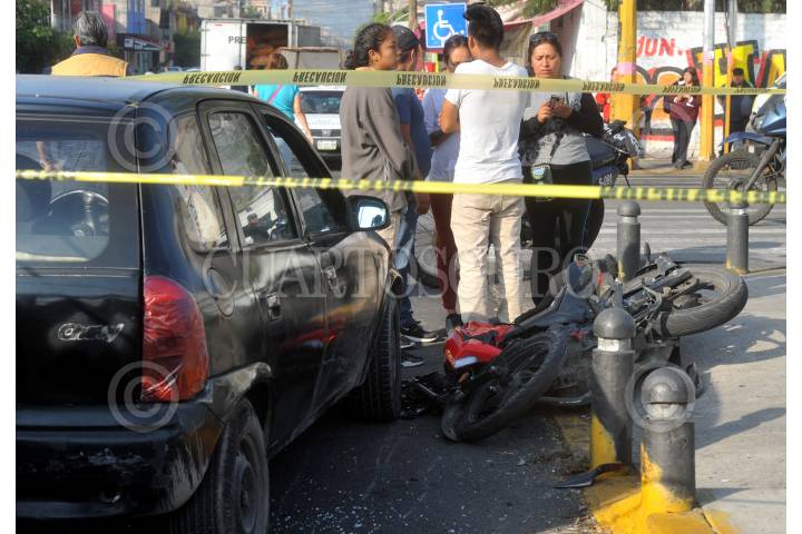 NEZAHUALCÓYOTL, ESTADO DE MÉXICO, 17JUNIO2019.- Un joven murió tras chocar su motocicleta con auto modelo Chevy, la víctima viajaba en el carril confinado del Mexibus y en un cruce es interceptado por el vehículo. Los hechos en avenida Chimalhuacán y calle de Paloma Negra, en la colonia Benito Juárez. FOTO: ARMANDO MONROY /CUARTOSCURO.COM