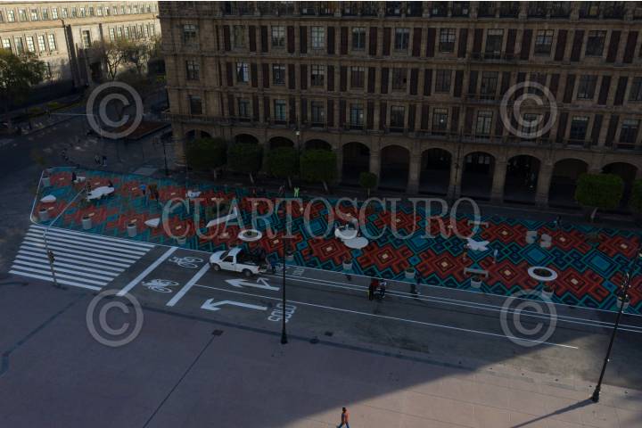 El nuevo peatonal intervenido en la parte sur de la plancha del Zócalo fue realizado para apmiar el área de peatones, reducir el arroyo vehicular y habilitar un carril cicilsta.