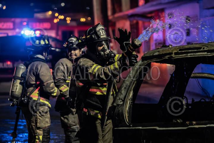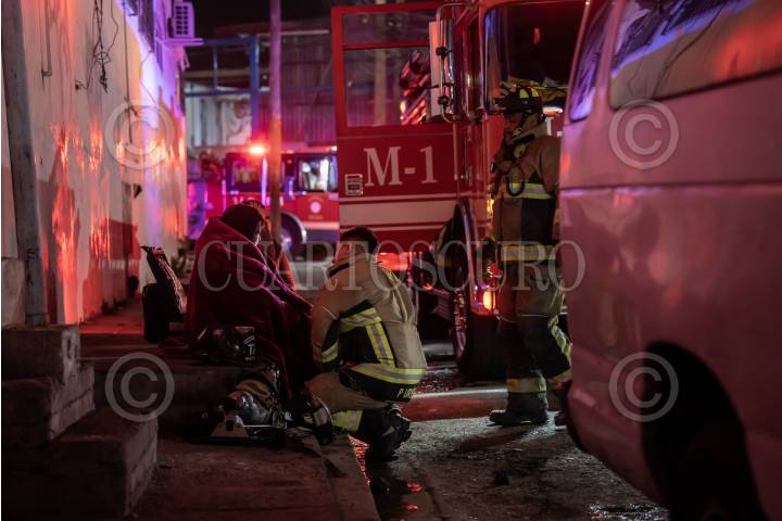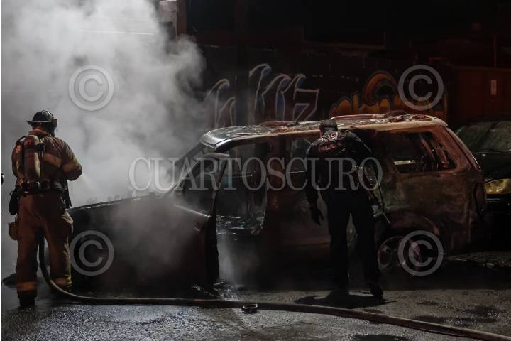 TIJUANA, BAJA CALIFORNIA, 26DIC2024.-Elementos del cuerpo de bomberos rescataron a un hombre que sufrió quemaduras de 2do y 3er grado tras el incendio de su automóvil. Los hechos se registraron la noche del este miércoles 25 de diciembre, sobre la avenida General Ramón Arnáiz de la colonia El Soler. Elementos del cuerpo de bomberos arribaron al lugar y encontraron un vehículo en llamas al exterior de unos departamentos, además de un hombre con quemaduras en su rostro, cuello y tórax. Paramédicos de la cruz roja le brindaron los primeros auxilios al hombre lesionado para luego trasladarlo en condición grave hacia un hospital para continuar con su atención médica. El Jefe de Batallón de Bomberos del Sector 1, Noé Cruz mencionó que debido a que el vehículo en llamas se encontraba bloqueando el acceso de los departamentos, una familia integrada por 2 adultos, 1 adulto mayor y 3 menores de edad, se encontraban resguardados en el interior, pero después de la intervención de los bomberos fueron evacuados sin ninguna lesión. Según información extraoficial, tras escuchar un fuerte estallido, vecinos de la zona se acercaron al lugar y al percatarse de que un hombre estaba en llamas, apoyaron sofocando con extintores el fuego qué presentaba el hombre en su cuerpo. OMAR MARTÍNEZ/ CUARTOSCURO.COM