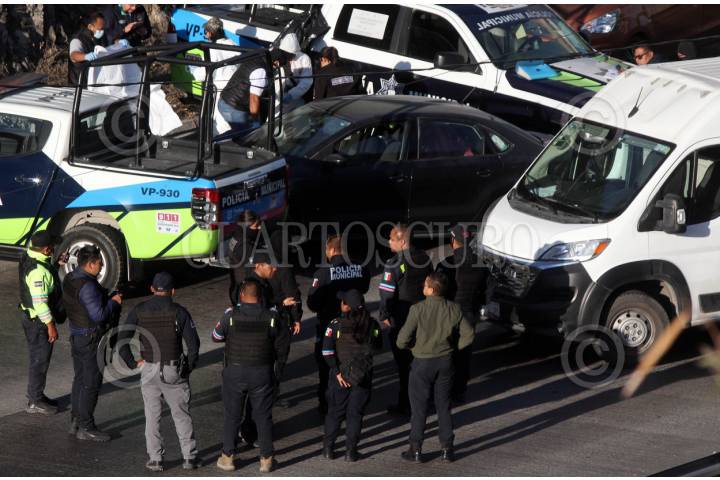 PUEBLA, PUEBLA, 05ABRIL2024.- Elementos de la policía municipal de Puebla acudieron al Periférico Ecológico donde fue abandonado un vehículo que contenía los restos de siete personas, cinco de los cuales fueron decapitados. FOTO: MIREYA NOVO/ CUARTOSCURO.COM