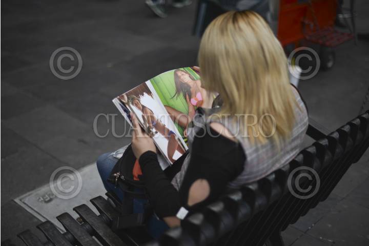 MÉXICO, D.F., 03JULIO2014.- Una joven observa una revista de moda en una banca de la calle Juárez. FOTO: ADOLFO VLADIMIR /CUARTOSCURO.COM