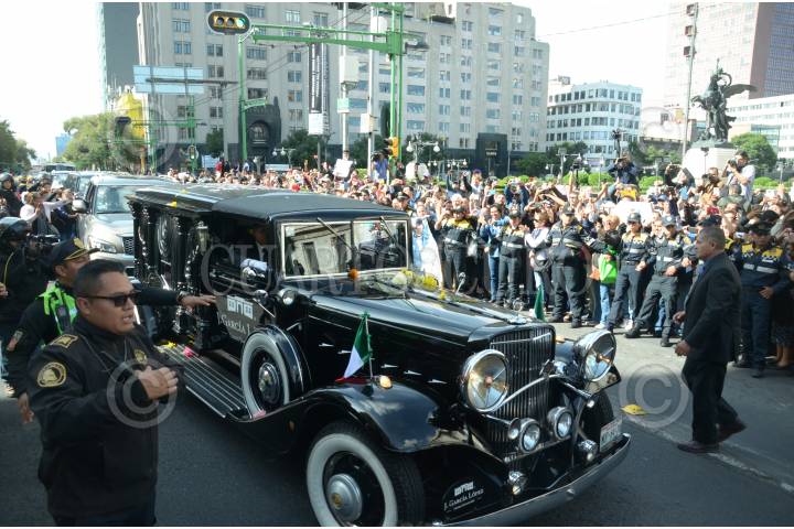 CIUDAD DE MÉXICO, 09OCTUBRE2019.- Los restos del cantante José José arribaron procedentes de Miami, Estados Unidos, en un avión de la Fuerza Aérea Mexicana, para recibir diversos homenajes en la capital, lo acompañaron en su recorrido por la ciudad sus hijos José Joel y Marisol, así como su ex esposa Anel, durante el recorrido sus admiradores lo despidieron a lo lejos. La imagen en su trayecto del aeropuerto al Palacio de Bellas Artes. FOTO: ARMANDO MONROY /CUARTOSCURO.COM