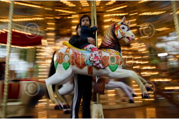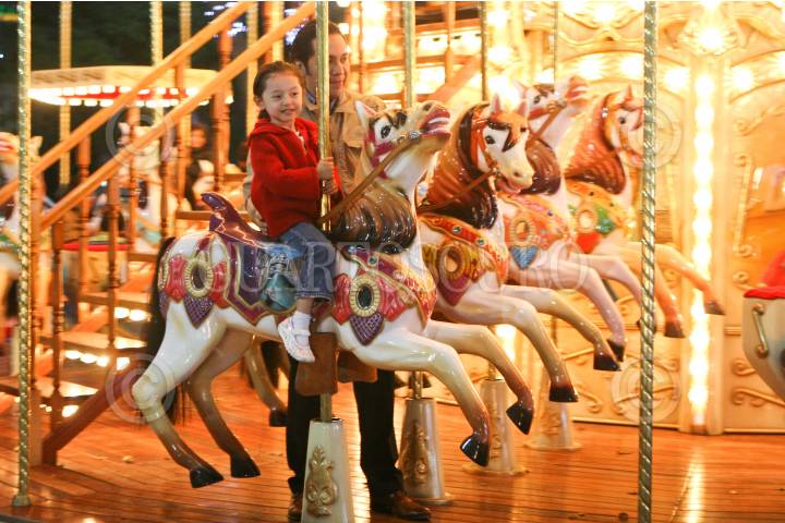 MÉXICO, D.F., 23JULIO2011.- Una niña acompañada de su mamá se divierte en un carrusel en el centro de la Ciudad de México. FOTO: MISAEL VALTIERRA/CUARTOSCURO.COM