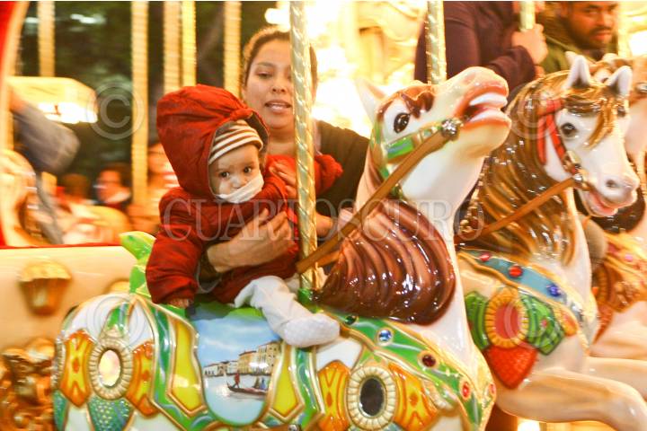 CIUDAD DE MÉXICO, 21DICIEMBRE2024. Un niño se divierte en el carrusel durante la romería en la explanada del Monumento a la Revolución, donde visitantes y vecinos acuden a disfrutar de antojitos y algunos juegos mecánicos. FOTO: EDGAR NEGRETE LIRA/CUARTOSCURO.COM