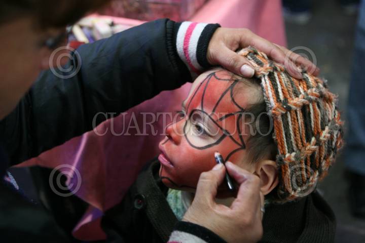 MÉXICO, D.F., 27DICIEMBRE2010.- Un niño se maquilla en la Alameda Central donde fueron colocadas diversas atracciones, entre ellas el poder "tomarse la foto" con los Reyes Magos. FOTO: ISAAC ESQUIVEL/CUARTOSCURO.COM