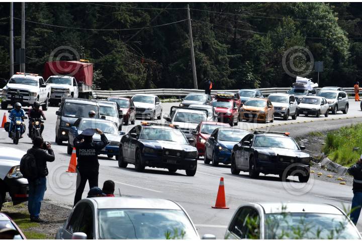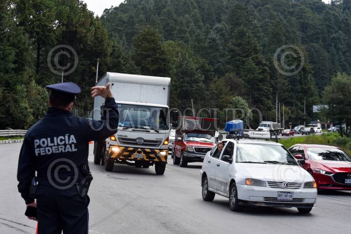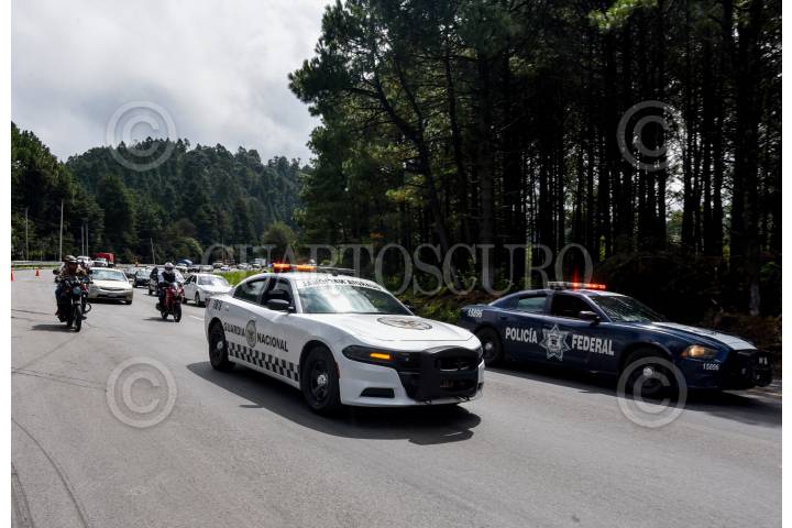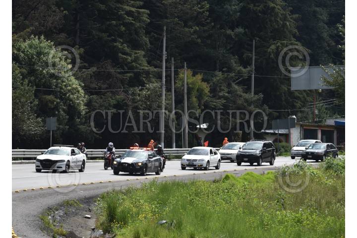 Elementos de la Guardia Nacional realizan carruseles para bajar la velocidad en la carretera México-Toluca, en donde se registran constantemente accidentes.