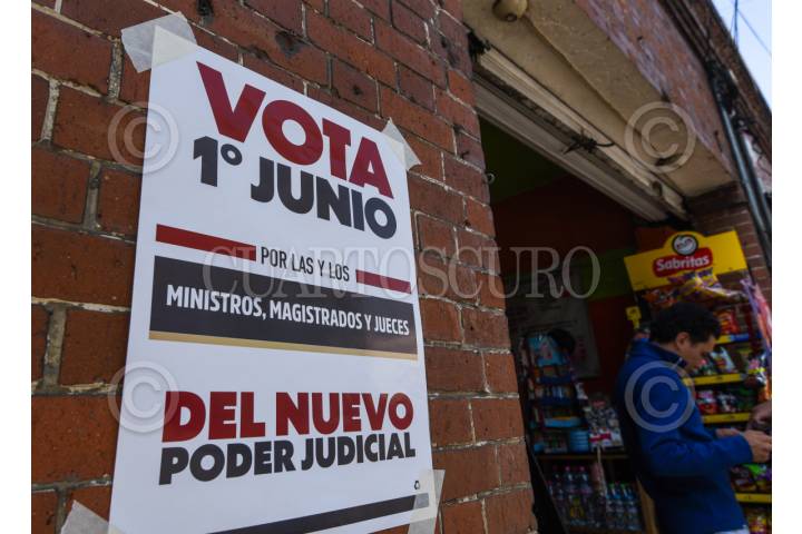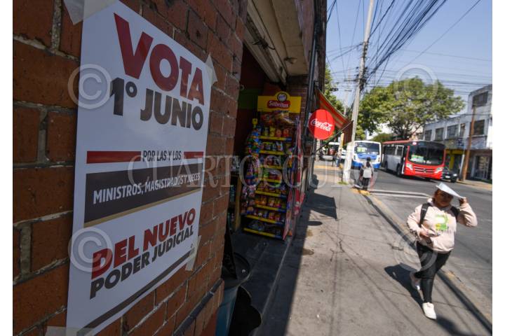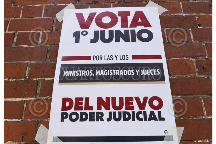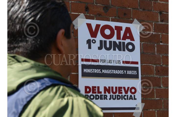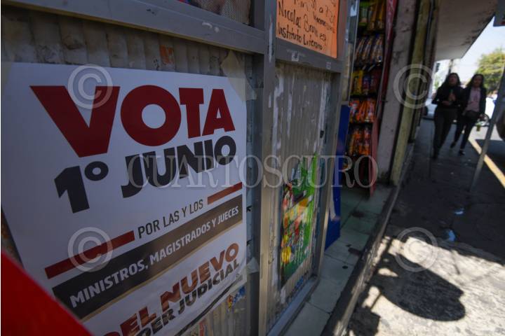 TOLUCA, ESTADO DE MÉXICO, 24ABRIL2025.- En algunas calles de Toluca han sido pegados carteles en donde se invita a votar el próximo 1 de junio, por las y los Ministros, Magistrados y Jueces como partes del Nuevo Poder Judicial. FOTO: CRISANTA ESPINOSA AGUILAR /CUARTOSCURO.COM