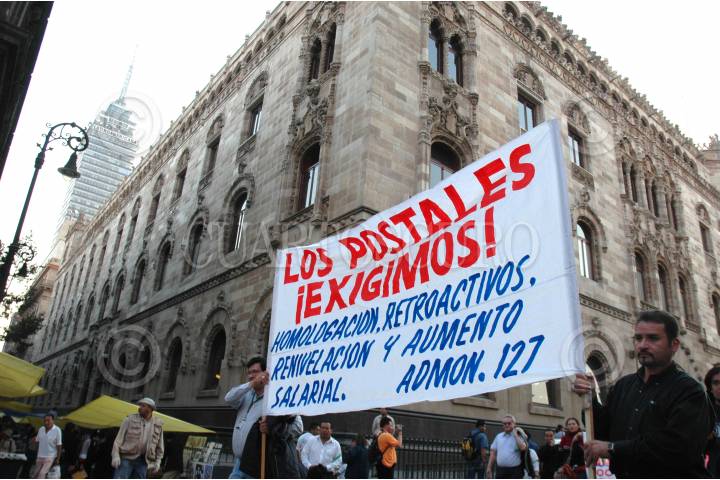 MÉXICO, D.F. 20ENERO2006.- Trabajadores del servicio portal mexicano relizaron una marcha que partió de la sede local hacia la Cámara de Diputados. FOTO: Iván Stephens/CUARTOSCURO.COM