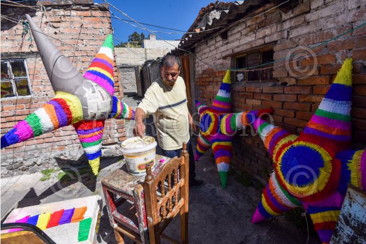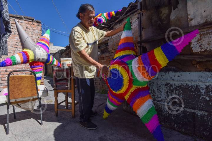 Por más de 40 años Felipe Carbajal ha elaborado piñatas utilizadas en las tradicionales posadas