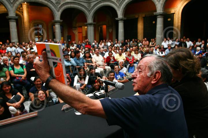 MEXICO, D.F., 05AGOSTO2008.- Decenas de personas pidieron un autógrafo al escritor y cartonista Eduardo del Río "Rius", quien presentó su libro "¿Sería Católico Jesucristo", ante un abarrotado patio del Museo de la Ciudad de México, FOTO: ISAAC ESQUIVEL/CUARTOSCURO.COM