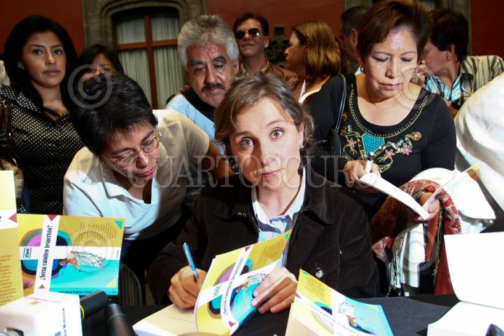 MEXICO, D.F., 05AGOSTO2008.- A pesar de no ser la autora del libro "¿Sería Católico Jesucristo" de Eduardo del Río "Rius", decenas de personas pidieron a la periodista Carmen Aristegui les firmara el texto. FOTO: ISAAC ESQUIVEL/CUARTOSCURO.COM