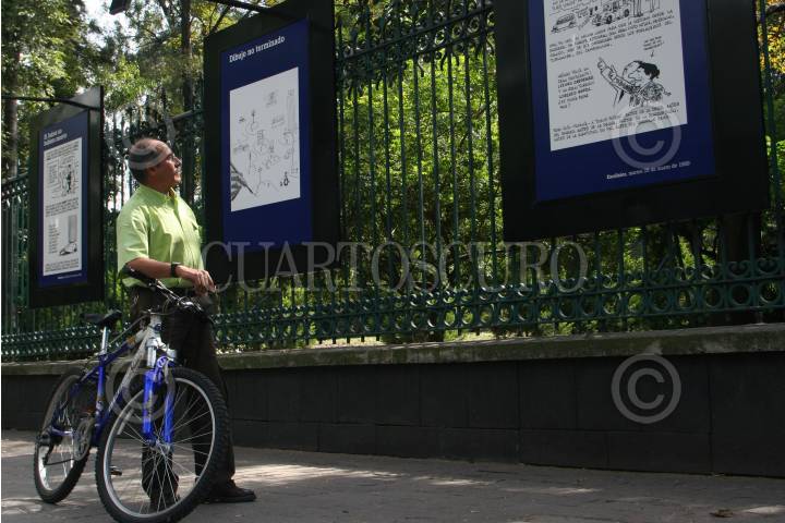MÉXICO, D.F., 23NOVIEMBRE2009.- Se llevo acabo la inauguración de la obra gráfica del cartonista Abel Quezada que lleva el nombre de Adorable y Enemiga la cual estará abierta al publico en las rejas del Bosque de Chapultepec hasta el 10 de enero del 2010. FOTO: ENRIQUE ORDÓÑEZ/CUARTOSCURO.COM