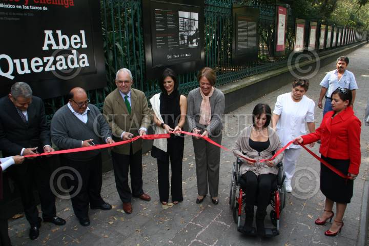 MÉXICO, D.F., 23NOVIEMBRE2009.- Elena Cepeda de León, titular de la Secretaria de Cultura del D.F., acompañada de familiares de Abel Quezada realizaron el corte de listón e inauguración de la exhibición de las obras del cartonista que lleva el nombre de Adorable y Enemiga la cual estara abierta al publico en las rejas del Bosque de Chapultepec hasta el 10 de enero del 2010. FOTO: ENRIQUE ORDÓÑEZ/CUARTOSCURO.COM