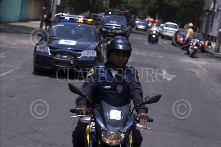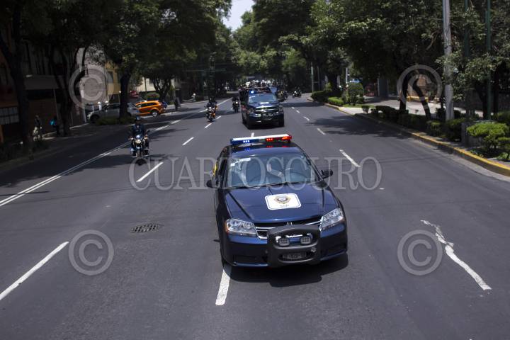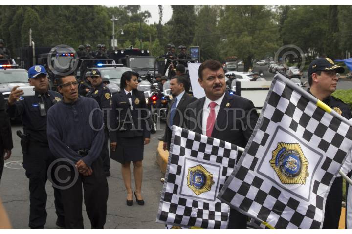 CIUDAD DE MÉXICO, 14JULIO2016.- Hiram Almeida, secretario de Seguridad Pública de la CDMX; encabezó el banderazo de salida del operativo vacacional contra robo a casa habitación en la colonia Lomas de Chapultepec. Decenas de camionetas partieron de este punto para patrullar las calles y combatir este delito que aumenta en estas fechas donde capitalinos salen por las vacaciones de verano. FOTO: MOISÉS PABLO /CUARTOSCURO.COM