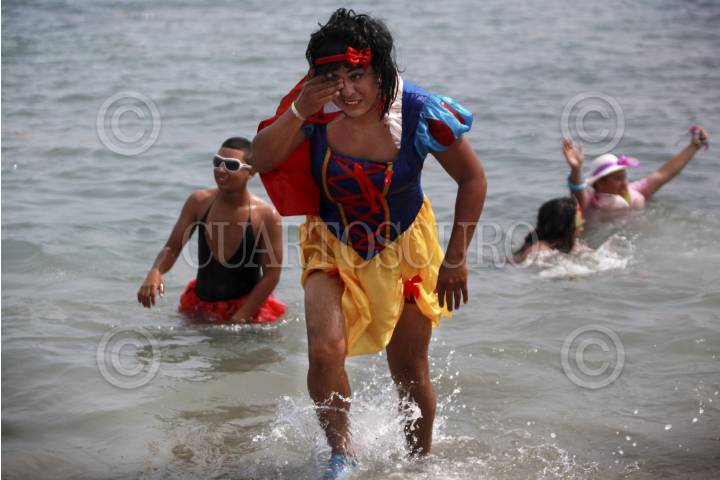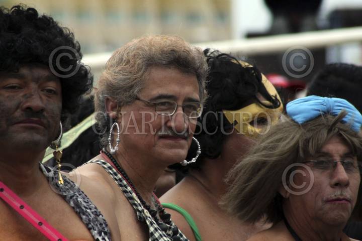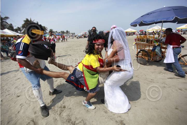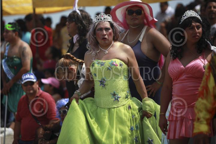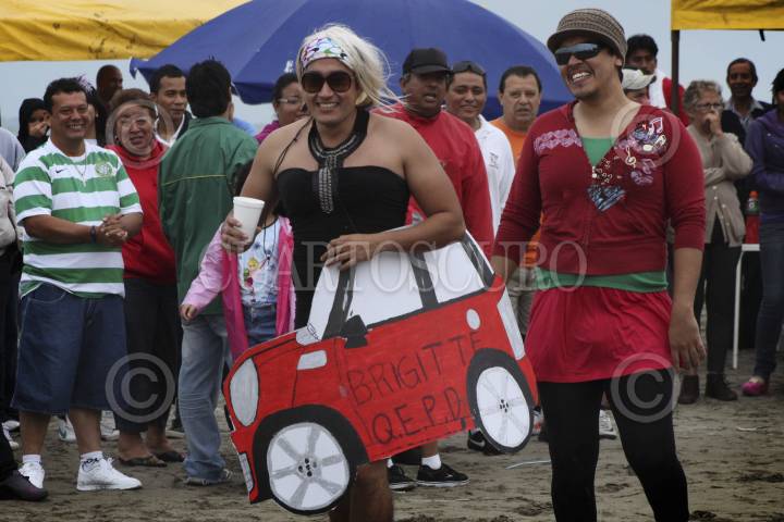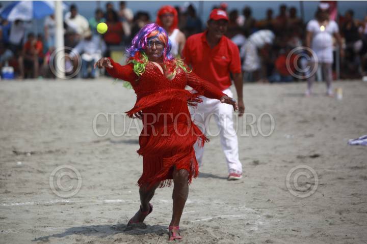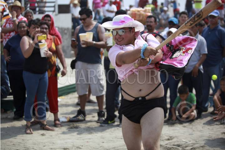 VERACRUZ, VERACRUZ, 23FEBRERO2014.- Como cada año y previo al carnaval jarocho, hombres de distintas edades se caracterizan de mujer para participar en el partido de baseball playero denominado "Solteras vs Casadas", el cual se llevó a cabo en la playa Martí de este puerto. Los jugadores brindan distracción al público con sus atuendos femeninos y la picardía que caracteriza a la región. FOTO: FÉLIX MÁRQUEZ /CUARTOSCURO.COM