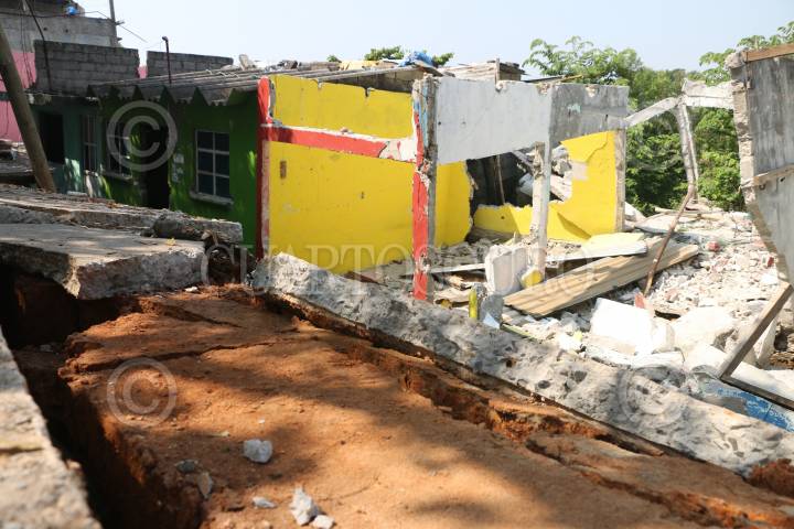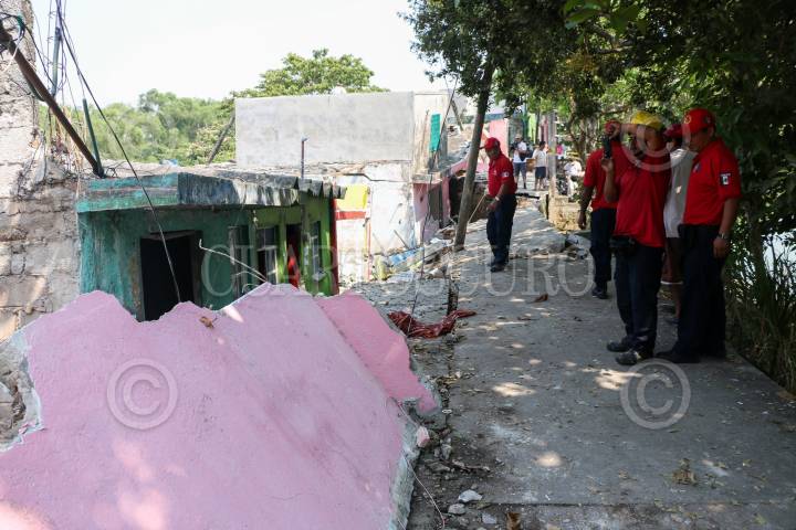 VILLAHERMOSA, TABASCO, 02ABRIL2017.- En el sector Majagua se registraron hundimientos de tierra donde al menos 30 familias habitan. Varias casas colapsaron en el transcurso de las primeras horas del día por lo que los pobladores abandonaron sus viviendas. Elementos de Protección Civil evaluaron las causas del siniestro. FOTO: MARCO POLO GUZMÁN HERNÁNDEZ/CUARTOSCURO.COM