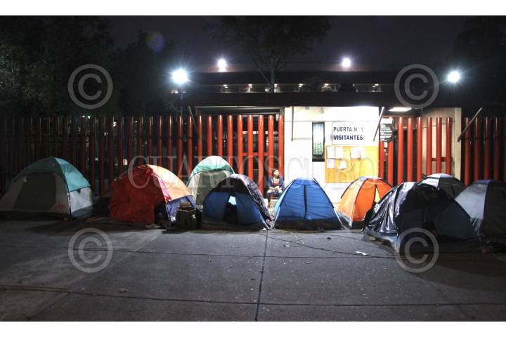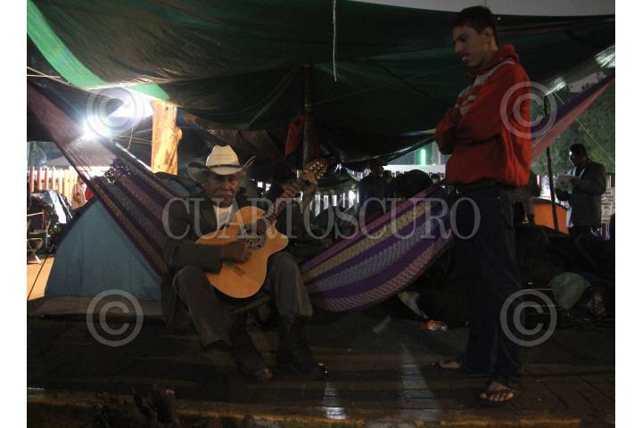 Integrantes de FRENAAA durante su plantón en la plancha del Zócalo. FOTO: ROGELIO MORALES /CUARTOSCURO.COM