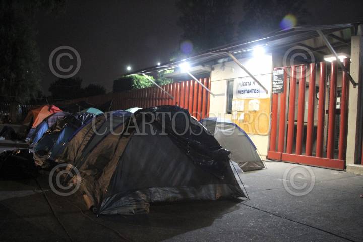 Aspecto de casa de campaña de FRENAAA, arrastrada por el viento en la plancha de la Constitución.