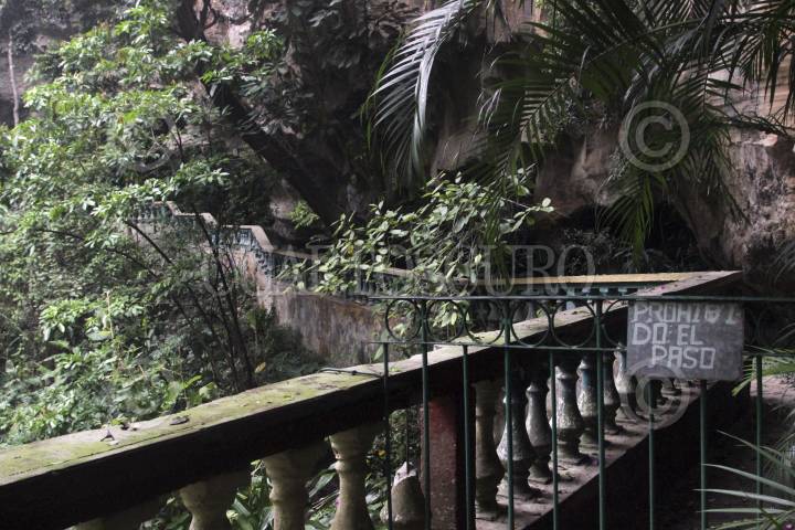 CUERNAVACA, MORELOS, 26JUNIO2016.- Con una caída de agua de más 40 metros; un paisaje pródigo que incluye fauna endémica como vencejos y cangrejo ribereño, flora como ahuehuetes y amates, además de nacimientos de agua cristalina y basalto columnar (estructura geológica muy poco común en el mundo), el Salto de San Antón está abandonado. A pesar de estar enclavado en el centro de la capital y ser uno de los pocos atractivos naturales con que cuenta el municipio, ningún orden de gobierno (municipal y estatal) hace nada para rescatarla, promocionar y cuidar este activo turístico. El acceso está restringido y solo se puede recorrer una pequeña parte del Salto. FOTO: MARGARITO PÉREZ RETANA /CUARTOSCURO.COM