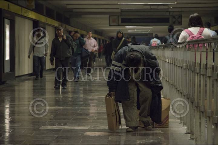 CIUDAD DE MÉXICO, 04MAYO2016.- Una mujer de edad avanzada camina encorvada por el “Pasaje de la Ciencia”, ubicado en la estación La Raza del Sistema de Transporte Colectivo. FOTO: GALO CAÑAS /CUARTOSCURO.COM