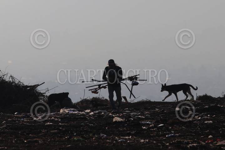 Un señor recolecta cascajo en uno de los basureros del Cerro de la Estrella