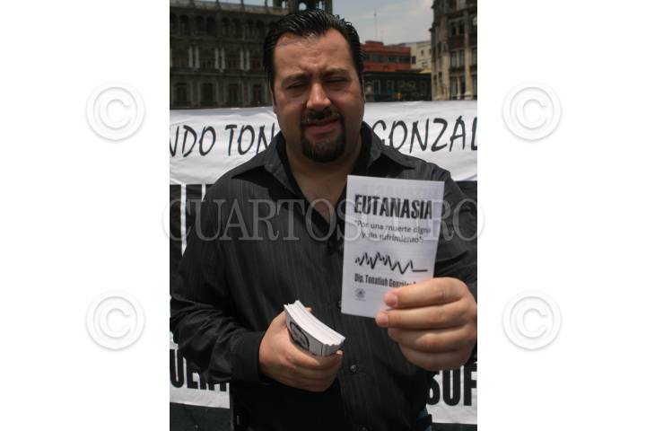 MÉXICO, D.F. 17JUNIO2007.- El diputado del PRI Armando Tonatiuh Gonzalez Case repartió propaganda a favor de la eutanasia sobre la plancha de la constitución. FOTO: SAÚL LÓPEZ/CUARTOSCURO.COM