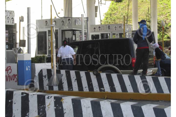 CHILPANCINGO, GUERRERO, 25NOVIEMBRE2014.-Integrantes de la Ceteg toman la caseta de Palo Blanco dando paso a cambio de una cooperación voluntaria. Solicitan a camiones les regalen combustible. FOTOS: JOSÉ I. HERNÁNDEZ /CUARTOSCURO.COM