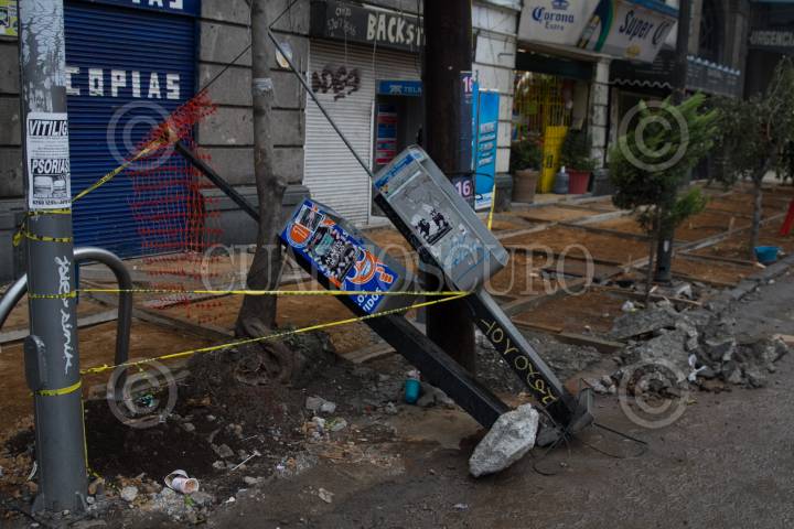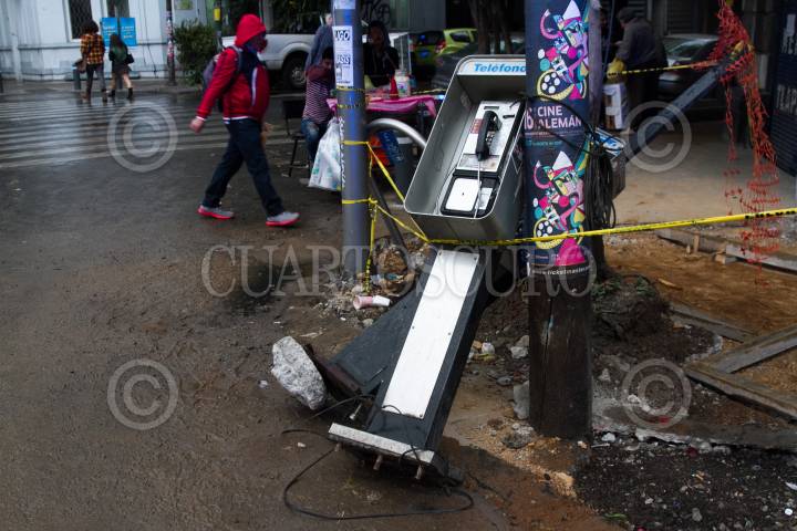 CIUDAD DE MÉXICO, 10AGOSTO2017.- Casetas telefónicas lucen abandonadas, luego de que fueron retiradas durante la renovación de las banquetas en Álvaro Obregón, este servicio de comunicación esta cada día más obsoleto, ante el aumento del uso del celular. FOTO: MOISÉS PABLO /CUARTOSCURO.COM