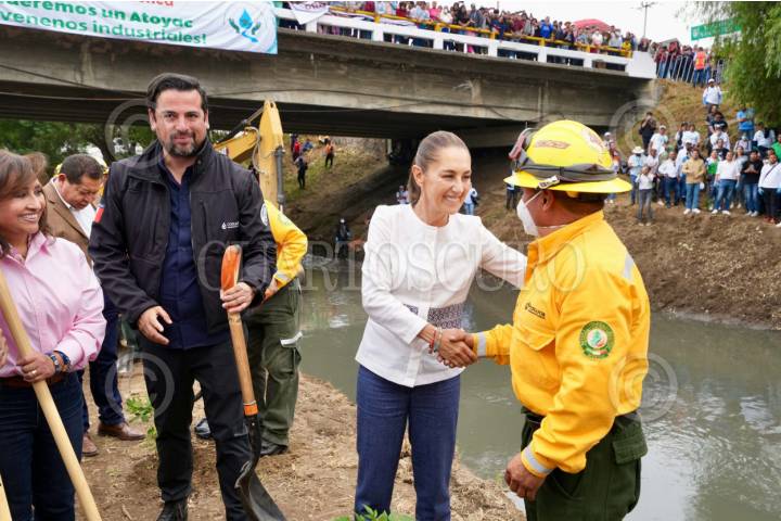 TLAXCALA, TLAXCALA, 22MARZO2025.- Arranque de la limpieza y restauración del río Atoyac, encabezada por Claudia Sheinbaum, presidenta de México. FOTO: PRESIDENCIA/CUARTOSCURO.COM