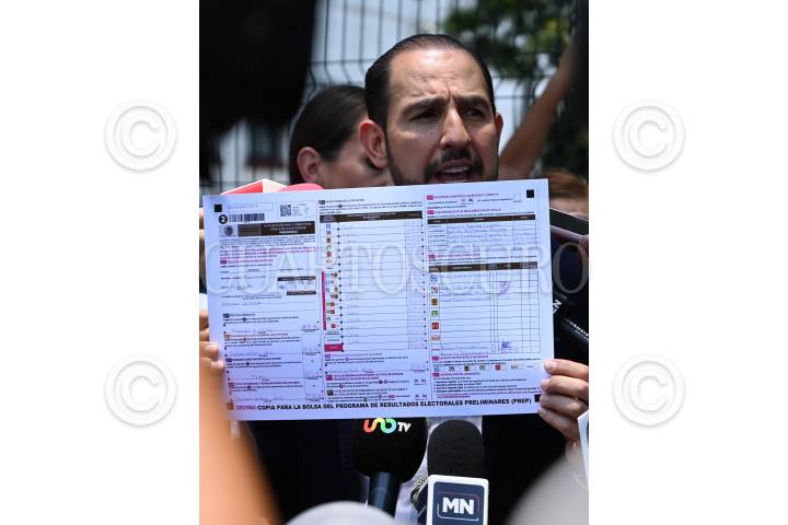 CIUDAD DE MÉXICO, 05JUNIO2024.- Marko Cortés, dirigente nacional del PAN, visitó la Junta Distrital 16 , dónde se lleva a cabo el conteo de votos y habló con los medios sobre las pruebas que han recopilado dónde asegura que existió un fraude electoral. FOTO: DANIEL AUGUSTO/ CUARTOSCURO.COM