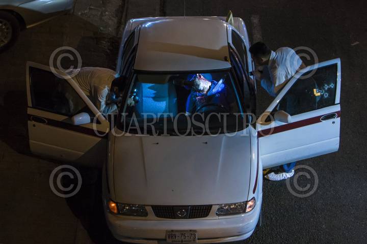 CULIACÁN, SINALOA, 21ENERO2017.- Alejandro Medina de 34 años de edad de oficio taxista, fue asesinado a balazos por sujetos armados mientras circulaba abordo de su unidad automotriz por el el boulevar Zapata a escasos metros de un conocido casino, casquillos nueve milímetros fueron localizas como evidencia, diferentes corporaciones y militares arribaron al lugar para realizar las investigaciones. FOTO: RASHIDE FRIAS /CUARTOSCURO.COM