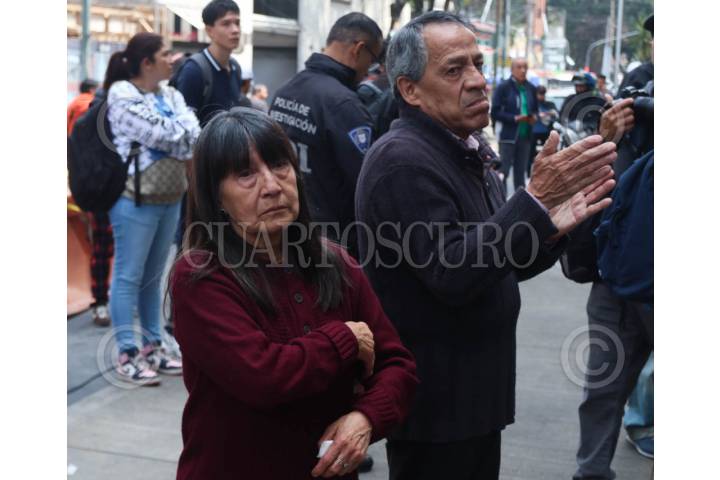 CIUDAD DE MÉXICO, 31JULIO2025.- Cristina Becerril y Rubén Espinosa, padres del fotoperiodista Rubén Espinosa durante una protesta en donde exigieron justicia en la Fiscalía General de Justicia de la CDMX a una década del multihomicidio de Mile Martín, Yesenia Quiroz, Nadia Vera, Rubén Espinoza y Alejandra Negrete en la colonia Narvarte. FOTO: GRACIELA LÓPEZ/CUARTOSCURO.COM
