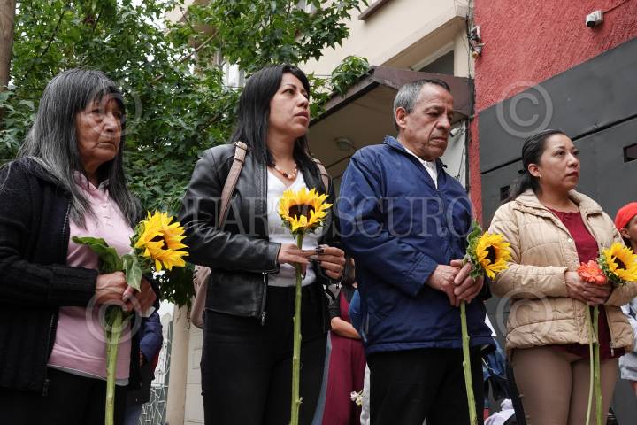CIUDAD DE MÉXICO, 31JULIO2025.- Colectivos protestaron en la Fiscalía General de Justicia de la CDMX a una década del multihomicidio de Mile Martín, Yesenia Quiroz, Nadia Vera, Rubén Espinoza y Alejandra Negrete en la colonia Narvarte. Durante el evento estuvieron presentes familiares y amigos. FOTO: GRACIELA LÓPEZ/CUARTOSCURO.COM
