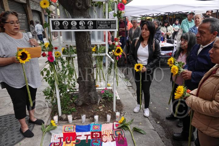 A ocho años del Caso Narvarte, familiares, amigos y periodistas realizaron el octavo festival #Arteparanoolvidarte para recordar la memoria de Mile, Nadia, Alejandra, Yesenia y el fotoperiodista Rubén Espinosa en la calle de Luz Saviñón, colonia Narvarte, lugar donde sucedieron los hechos