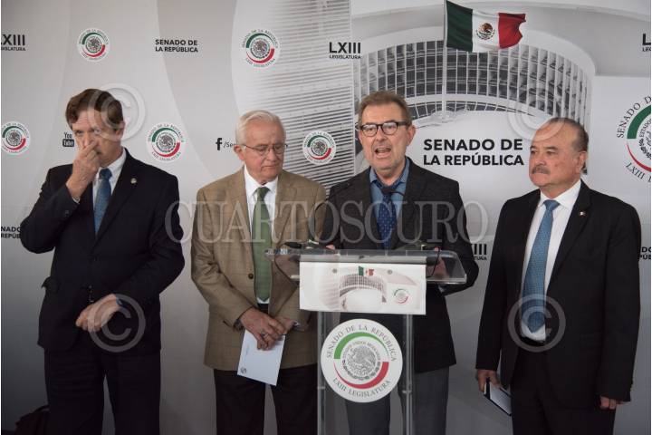 CIUDAD DE MÉXICO, 27FEBRERO2018.- Juan Carlos Romero Hicks, y los senadores Francisco de Paula Búrquez Valenzuela, Víctor Hermosillo y Celada, María Marcela Torres Peimbert, y Ernesto Ruffo Appel, en conferencia de prensa, hicieron un llamado a la PGR para se generé un informe sobre los funcionaros públicos que participaron en actos de corrupción en el caso Odebrecht. FOTO: MARIO JASSO /CUARTOSCURO.COM