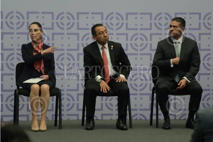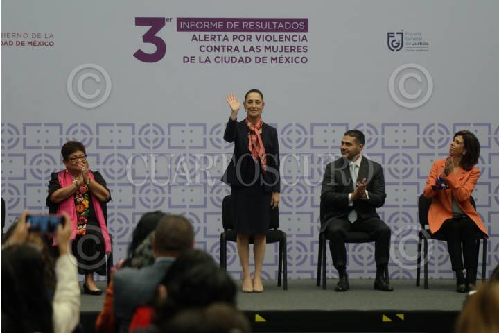 Claudia Sheinbaum, jefa de Gobierno, encabezó la presentación del Tercer Informe de Resultados de la Alerta por Violencia contra las Mujeres en la Ciudad de México. En el evento estuvieron presentes: Ingrid A. Gómez Saracíbar, secretaria de las Mujeres de la Ciudad de México; Ernestina Godoy Ramos, fiscal General de Justicia; Omar García Harfuch, secretario de Seguridad Ciudadana; Rafael Guerra Álvarez, magistrado presidente del Poder Judicial de la Ciudad de México; Belén Sánz Luque, representante de ONU Mujeres en México y Fabiola Alanís Sámano, comisionada nacional para Prevenir y Erradicar la Violencia contra las Mujeres.