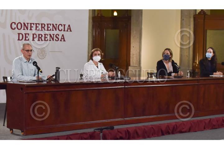 Hugo López-Gatell Ramírez, Subsecretario de Prevención y Promoción de la Salud, en compañía de Miralda Aguilar Patraca, titular de la Oficina de Representación en el Estado de México Poniente; Anabelle Bonvecchio, Directora de Políticas y Programas de Nutrición en Instituto Nacional de Salud Pública y Catalina Gómez, jefa de política social Unicef México en protección social, nutrición y bienestar de la infancia, durante el informe diario sobre la pandemia de coronavirus (covid-19) en el país. La actualización indica que el país ha alcanzado los 462 mil 690 casos confirmados acumulados y 50 mil 517 personas que han fallecido a causa de esta enfermedad.