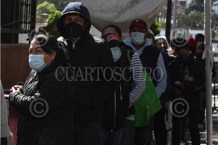 Vecinos de la alcaldía formados en espera de la aplicación de la prueba rápida para la detección de COVID-19.