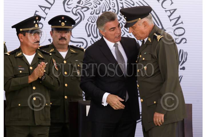 CIUDAD DE MÉXICO, 14OCTUBRE2019.- El General Luis Cresencio Sandoval, Secretario de la Defensa Nacional, encabezó la entrega de condecoraciones a integrantes del Ejército Mexicano, esta mañana en el campo de Fútbol, de la Sedena. FOTO: VICTORIA VALTIERRA /CUARTOSCURO.COM