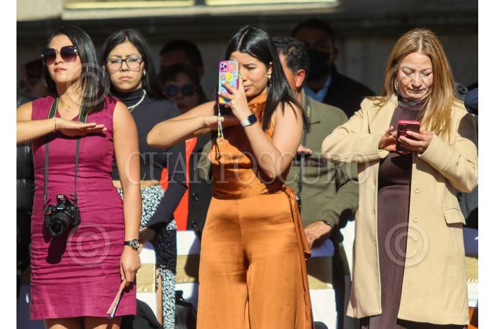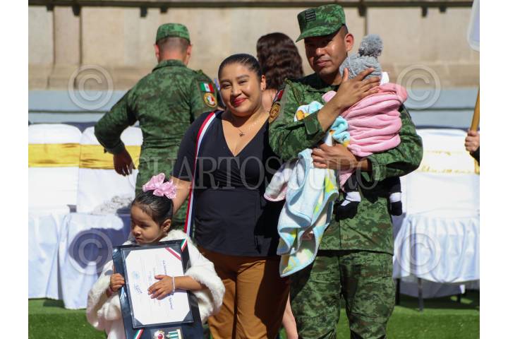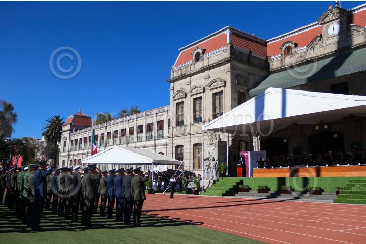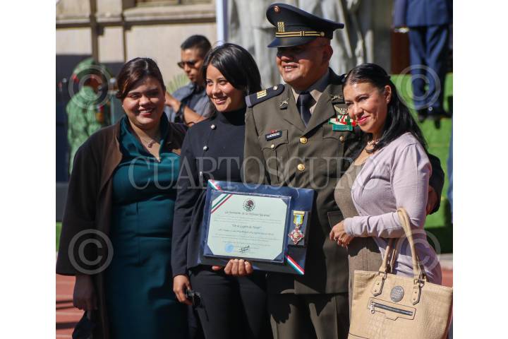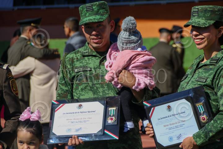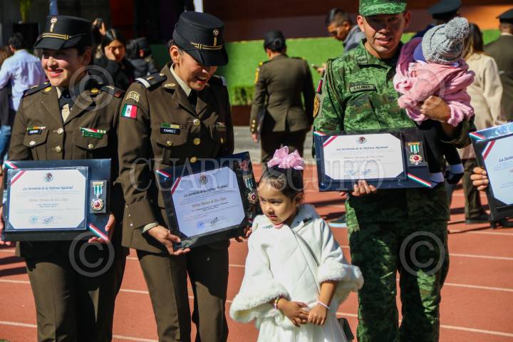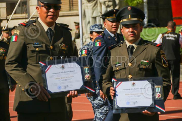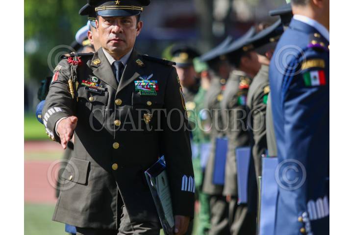Condecoraciones a militares de todos los rangos en el Colegio de Popotla, de la alcaldía Miguel Hidalgo; esta mañana.