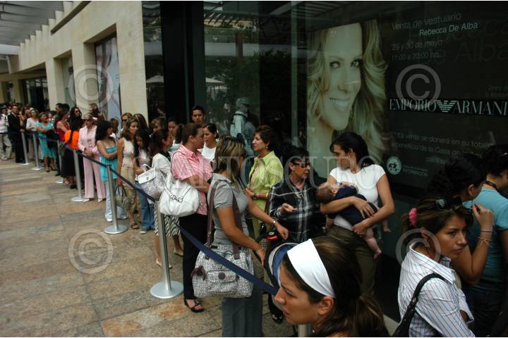 MÉXICO D.F. 29MAYO2007.-La gente se formo para la venta de de vestuario casual combocada por la conductura Rebecca de Alba, la cual dono el 80% de su vestuario ya que lo recaudado será donado en su totalidad a la organización ¨Casa de la Amistad para Niños con Cácer¨ esto en un centro comercial en la zona de Polanco. FOTO: GUILLERMO PEREA/CUARTOSCURO.COM