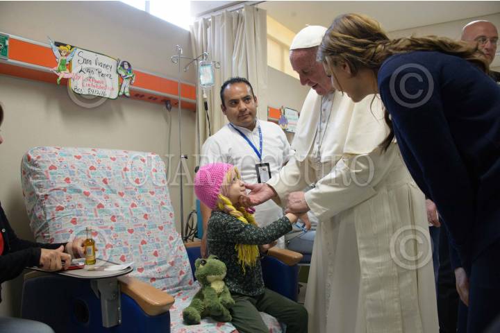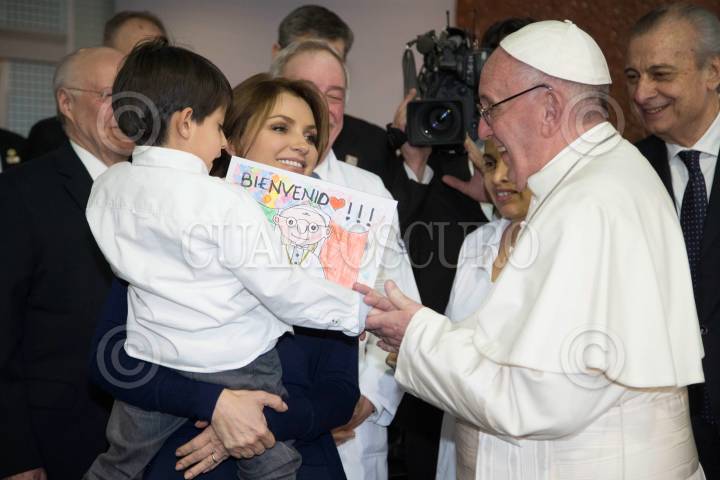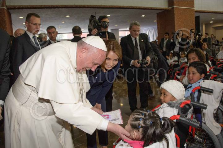 CIUDAD DE MÉXICO, 15FEBRERO2016.- El Papa Francisco durante su visita al Hospital Infantil de México “Federico Gómez” acompañado por la primera dama Angélica Rivera. FOTO: CUARTOSCURO.COM